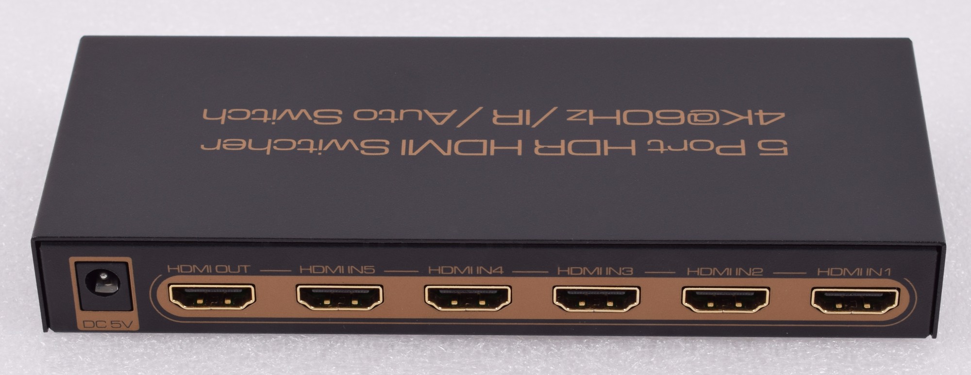 1.Five HDMI Inputs switch to one HDMI Output