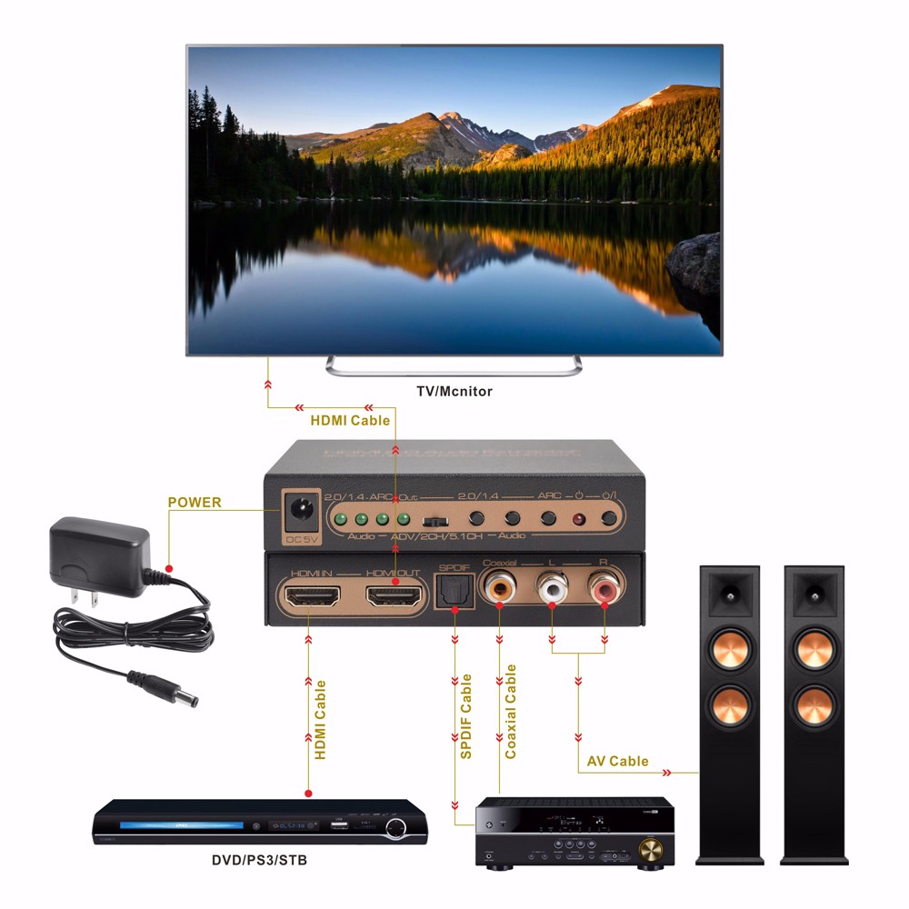 HDR HDMI Audio Extractor 4K@60Hz/UHD/HDCP2.2/ARC/ EDID Setting