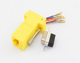 DB9 to RJ45 female adapter FEATURES: These adapters are used to run RS232 data over long distances (up to 100m) using UTP Cat 5e cable to bridge the gap. They are used in pairs and have selectable pin