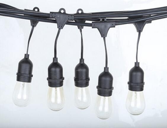48ft Black Commercial Medium Suspended Socket String Light & 11S14 Clear Bulbs