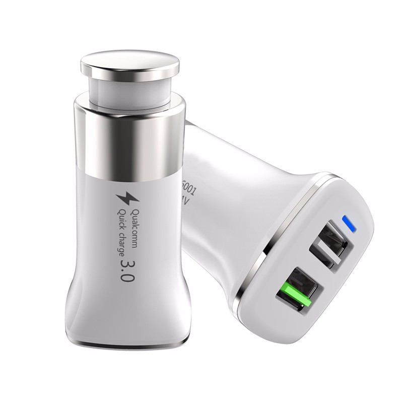 QC3.0 double usb quick car charger double usb car charger QC3.0Features:1.Built-in import intelligent IC keep your devices protected against over-volttage,over-current,over-temperature,over-load,short