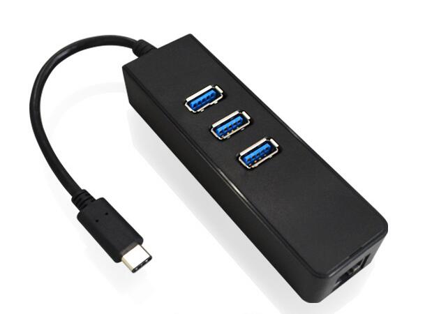 This is a USB 3.1 Type-C to three USB 3.0 ports with Gigabit Ethernet port hub, designed for connecting three USB devices or hubs to a USB-C host computer. Besides, the host computer can easily get access to the network through the Gigabit Ethernet port. It can work on Macbook or Google new Chromebook Pixel and other USB-C supported devices.