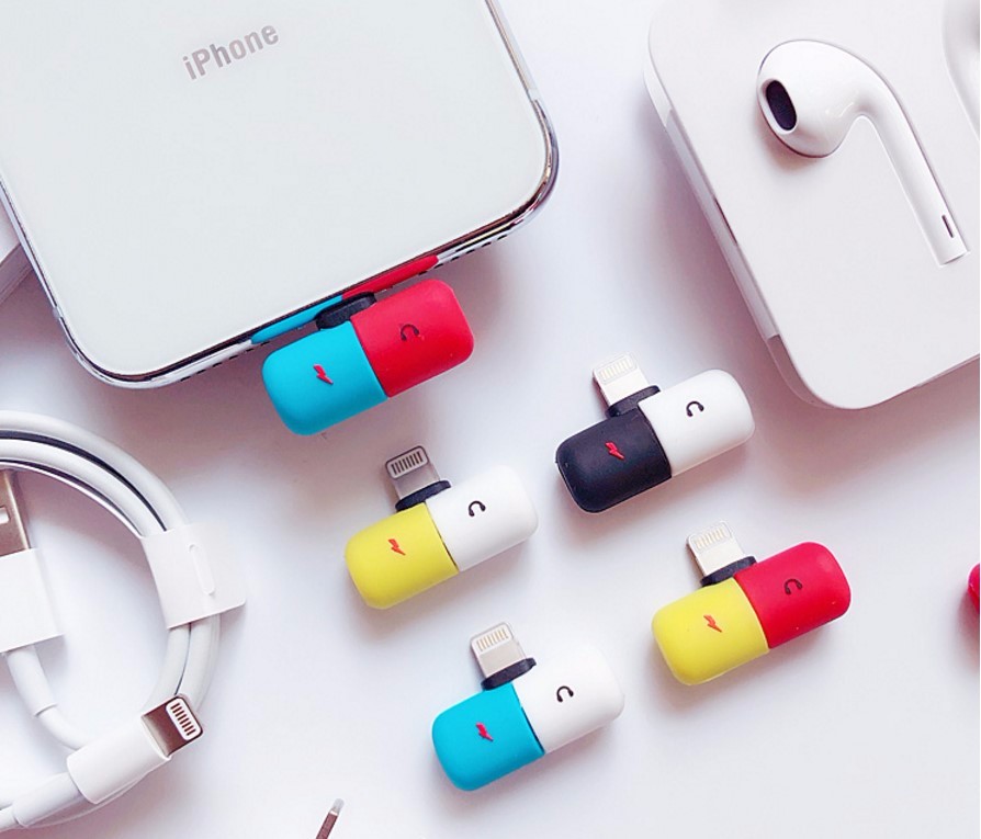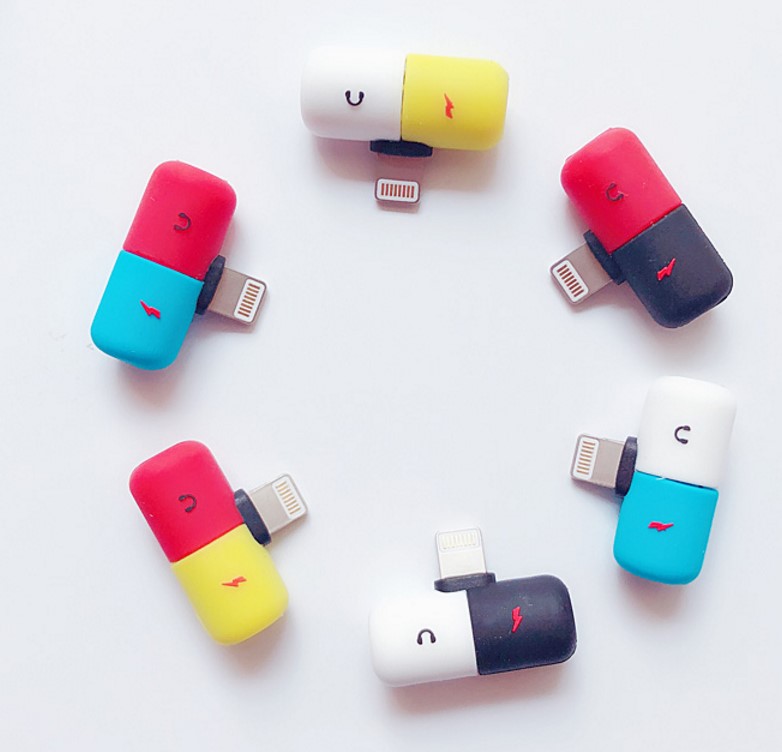 New arrival splitter adapter for iphone 2 in 1 USB Charger Capsule Splitter Adapter for iPhone