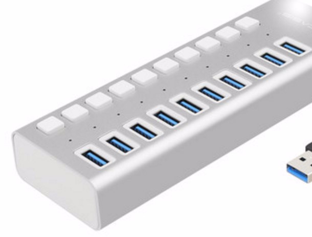 USB 3.0 Hub with 10 Ports USB 3.0 Ports for Data Transfer AND each ports with POWER switch