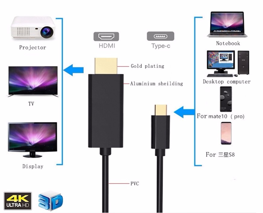 USB C to HDMI | USB 3.1 Type C to HDMI cable allows you to mirror or extend your MacBook 2017 display to your HDMI-enabled TV or display.High quality and exquisite Type C to HDMI cable with stylish space grey Connector in aluminum alloy shell. |