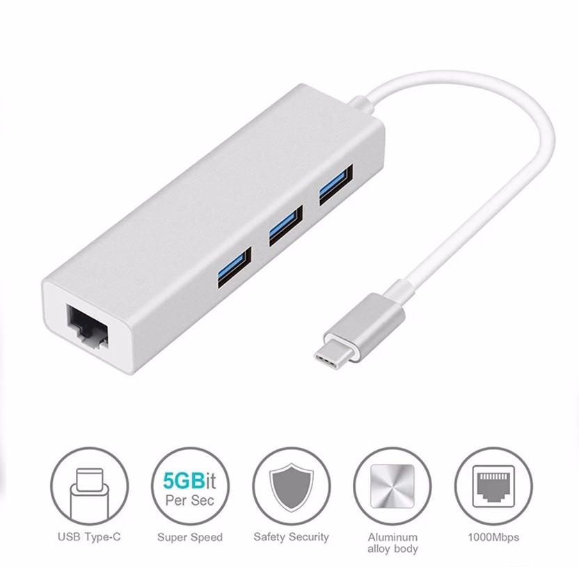USB 3.1 Type C USB-C 3 Ports Hub with Gigabit Ethernet Network LAN Adapter Multiple for laptopSpecification:Using high-strength metal materials, fine workmanship, compact and sophisticatedAdd 3 USB3.0